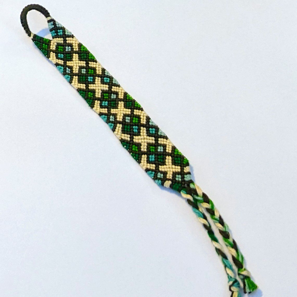 My bracelet-making talent: Stitched loops and shaped starts, knotting quickly