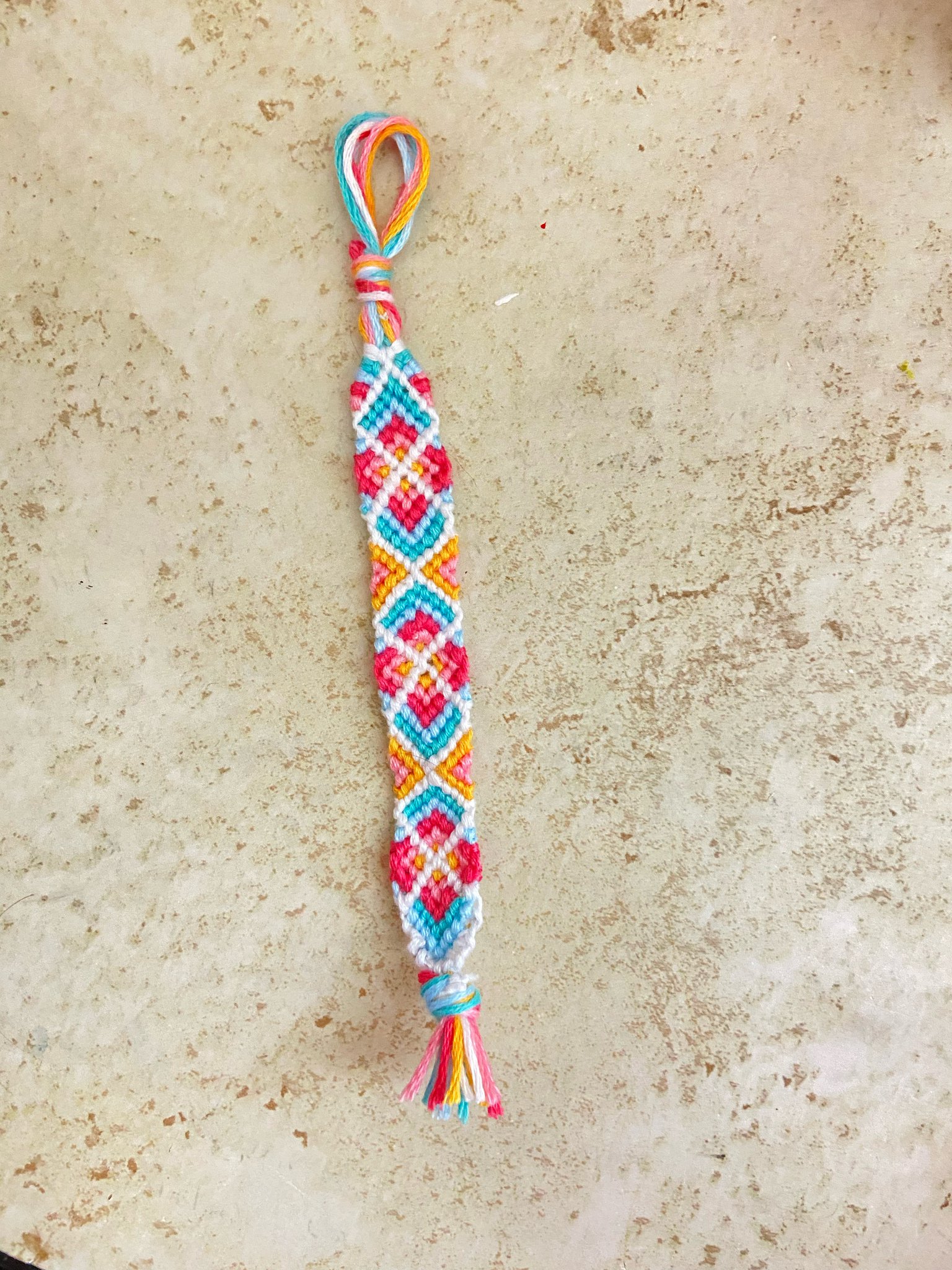 My string broke while I was making this bracelet, so I just tied it off and made it a keychain.