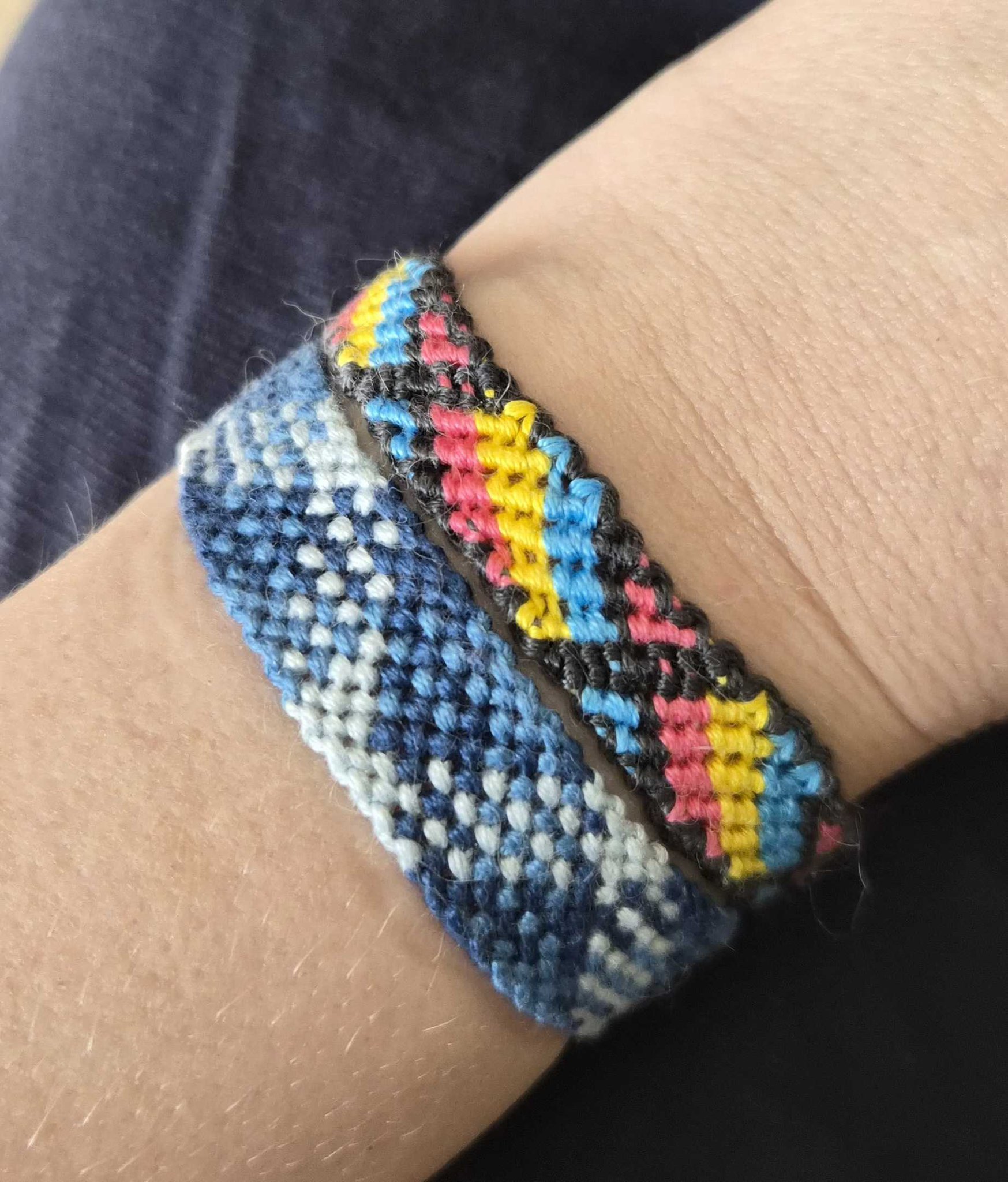 I LOVE this with the 5 colors!! (In the example shown with 8 blacks & the 4 ivory-cream-gold-chocolate single strings) I like ithave done this one actually w/the original 3 colors, but, I guess it pays to dink around because I couldn't think of what keywords to search for anymore so I was just thinking to myself, "hmmm.... I wonder if there are actually any bracelet pattern #on here with single or double digits!& what might THOSE early ones be?! Hmmm... 🤔?" (I think I typed in #8 first & it said no results then I just hit 4- dang fat fingers I was trying to try '#82,' but, instead here I am at 81 indeed & it's pretty cool... Same one I did when I was using the other bracelet pattern site I used to/occasionally still use today sometimes too *uhhh, oh yeah! Friendship bracelets dot net; I only found THIS site about 8mos later & much prefer it far more than that one now!*Lots of crossovers with common enough patterns though; but definitely doesn't ever show the VARIATIONS like on here & those VARIATIONS add SOOOO much! Like this 5 colored black & gold's one! It may as well just be its own, separately numbered pattern! Ini love it! *Gives me a chance to work more on my shoddy, single-string bracelet LOOPS I'm apparently so hellbent on making on EVERY. SINGLE. ONE!!!???* ❤️ 👍 |