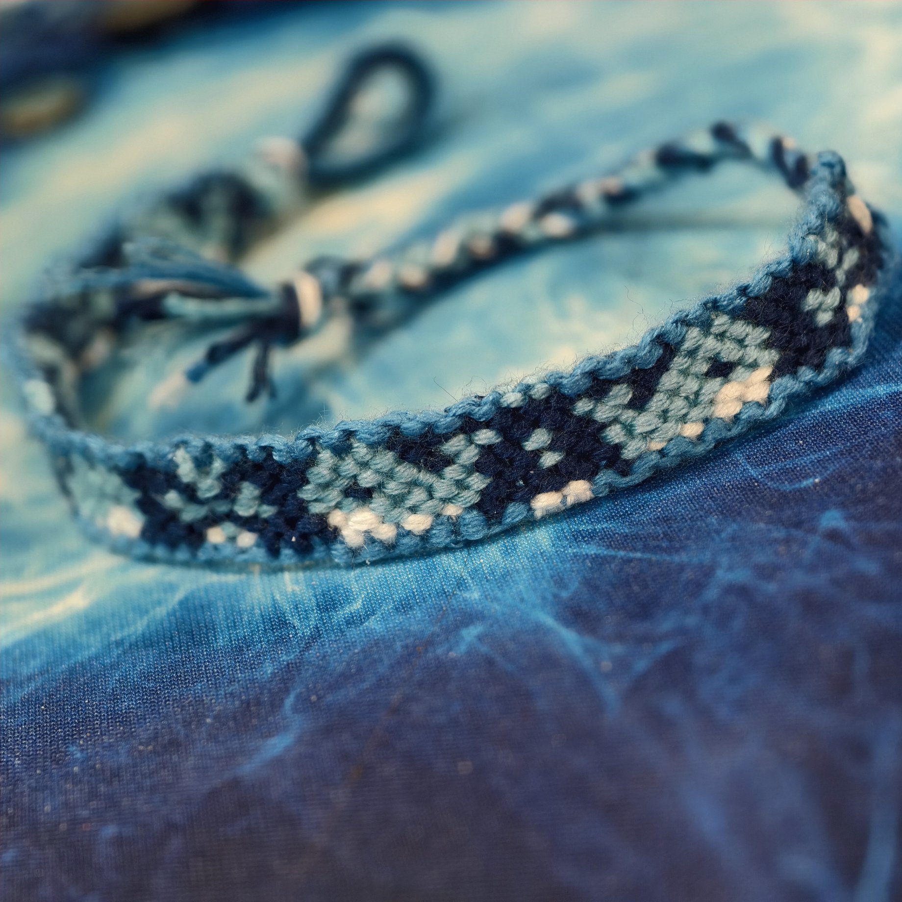 I made this pattern for my friend who loves whales, he LOVES it 😄 I found that repeating the pattern twice for a total of four whales works for an smaller size wrist, it was a little bit on the short side but I made up for it by using ribbon crimps and chain end piece to make it adjustable (photo by me posted above)