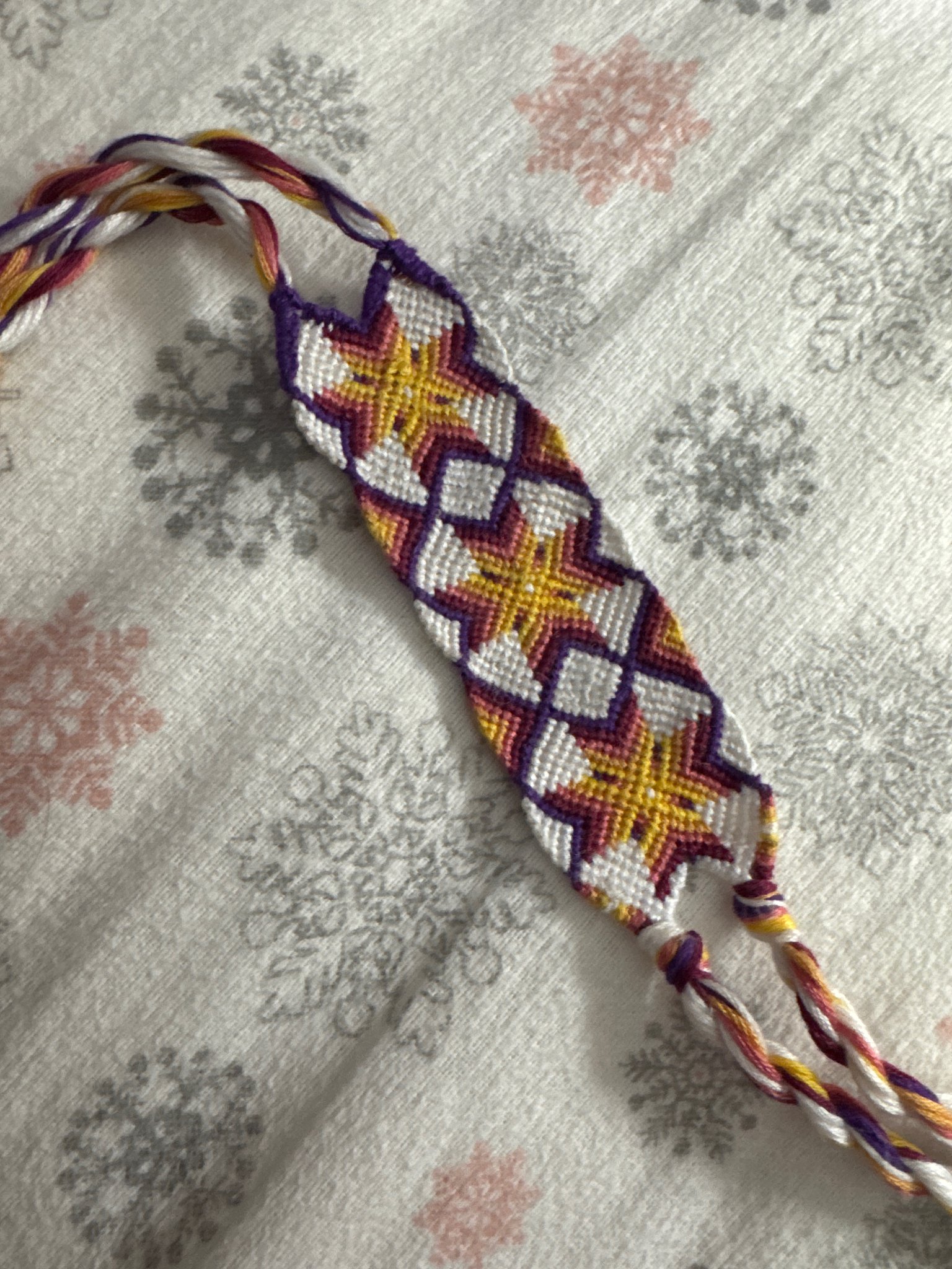 what the pattern for the bracelet next to the starburst bracelet in the video that says ‘triangle ends after a loop’?